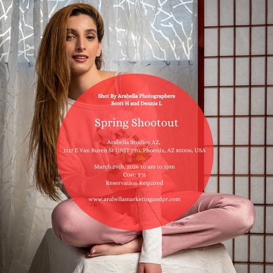 Join us for our Spring Shootout at Arabella Studios. You can shoot in any style that you like. Open to Talent and Business to get marketing photos. Shoot does not include hair and makeup.